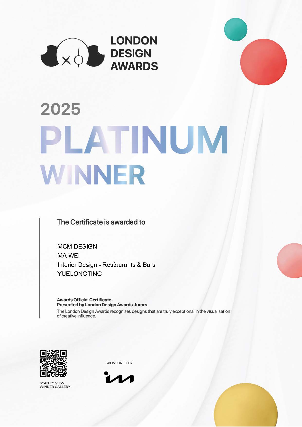 悦珑庭·匠心宴荣获2025London Design Awards-铂金奖